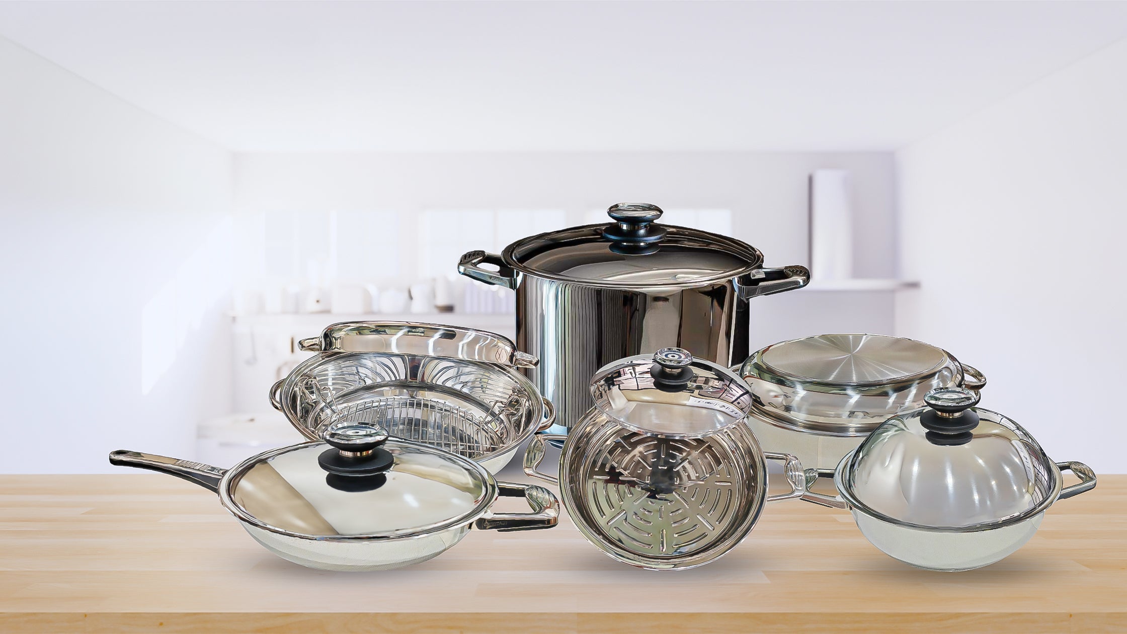 Multi-layers of heat conducting metals spread heat quickly and evenly eliminating the need for oil. A vapor seal creates a vacuum in each pan and eliminates the need for excess water as well. Foods prepared the waterless, low-temperature way retain more vitamins and minerals. There is only a 2% average mineral loss with our Thermo-Control cooking method – a savings up to 47%.