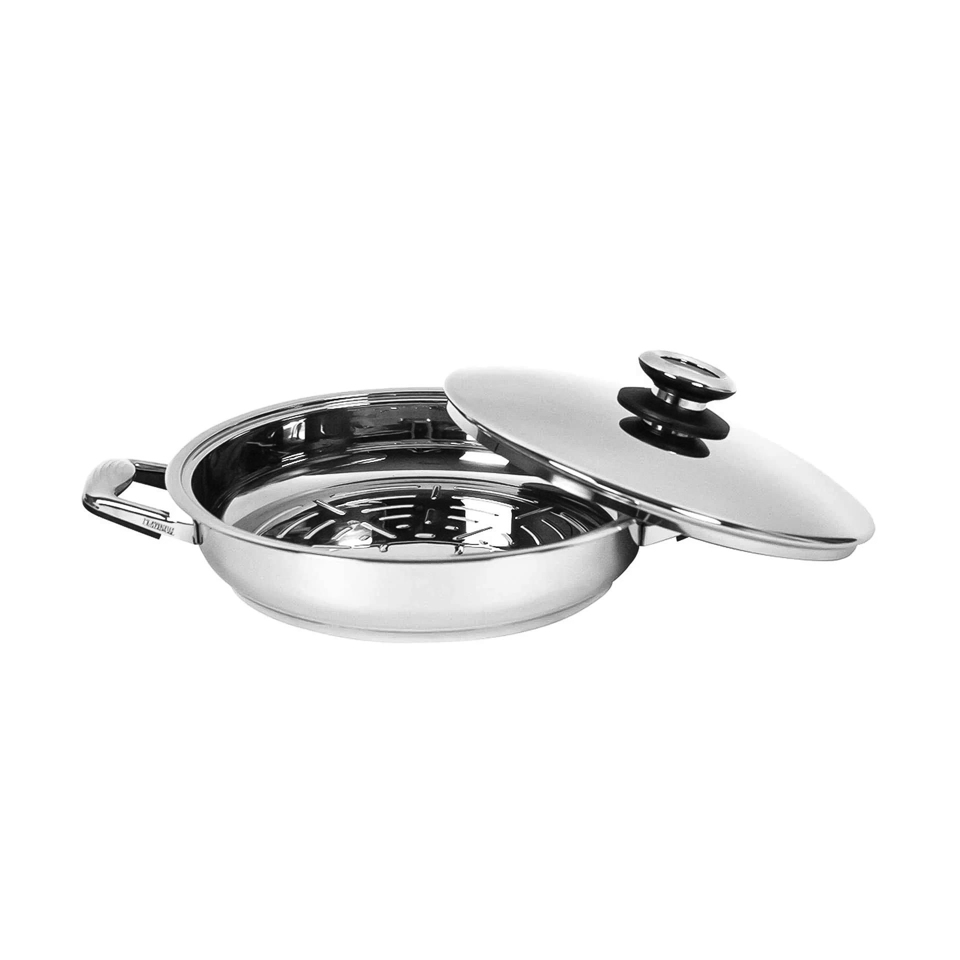 Experience the finest cookware in the world by purchasing this Professional Platinum Grill Pan! With this nonstick grill pan, you are investing in lifelong dividends in healthy, flavorful, and cost-effective meals for you and your family. Professional Platinum Cookware is made of the finest grade T304 stainless steel and each unit has special heat transmitting properties for fast, even heat distribution.