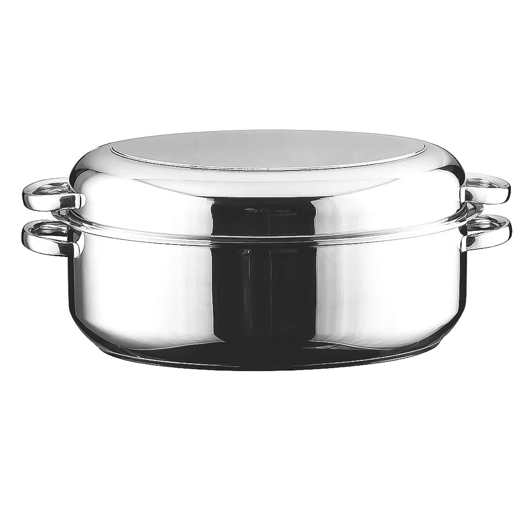 Experience the finest cookware in the world by purchasing this Professional Platinum Oval Roaster! With this nonstick pan, you are investing in lifelong dividends in healthy, flavorful, and cost-effective meals for you and your family. Professional Platinum Cookware is made of the finest grade T304 stainless steel and each unit has special heat transmitting properties for fast, even heat distribution. The Encapsulated Base and Cover allows for a huge variety of cooking options. The Platinum Oval Roaster is Two Pans in One.